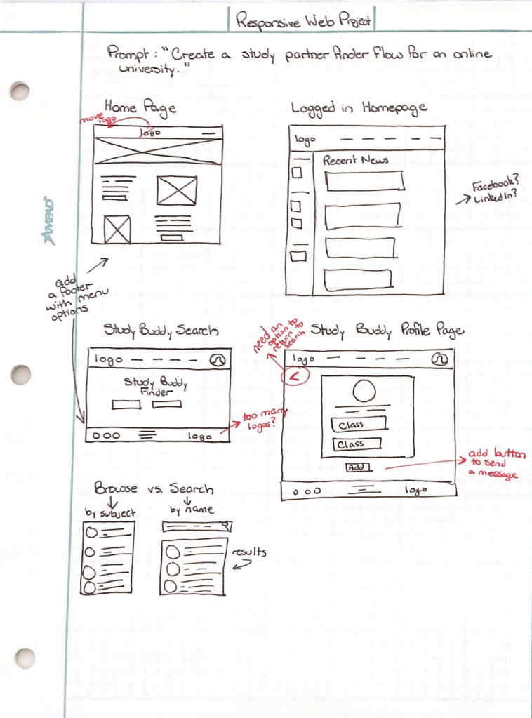 As a part of Course 6: Responsive Web Design in the Google UX Certificate program, we were allowed to choose a prompt to inspire our design. I was lucky and received the following prompt as the first option to choose from; “create a study partner finder flow for an online university.” Our instructions for this project were to follow a typical design sprint, but the focus here would be on creating high-fidelity prototypes for both desktop and mobile views. Unlike the previous projects where the primary tool was Figma, our instructions indicated that we had to use Adobe XD.
