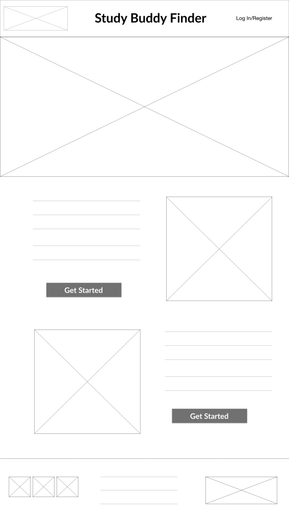 After I finished the research phase, I began to ideate some plans for the actual design. Again, time was limited, so I could only go through a couple of rounds of brainstorming before I had to create a low-fidelity prototype. You can view my preliminary wireframes below.